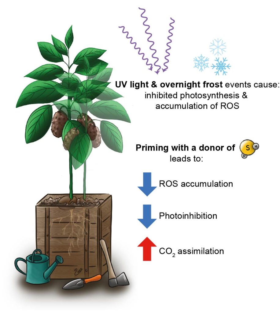 Plants rarely experience stress in isolation and often have to respond to a confluence of different challenges simultaneously. Some of these are self-evident, such as the combined burden of drought and heat stress, while others are far less obvious. For example, plants that experience night-time frost conditions followed by an abundance of sunshine the following day can suffer from a condition known as ‘radiation frost’. What makes this one-two punch of environmental stressors so harmful is that cold stress effectively cripples the plants ability to carry out photosynthesis and the subsequent exposure to high light triggers a rapid and dangerous accumulation of reactive oxygen species (ROS). One effective way to enhance a plant’s inherent ability to resist challenges such as these is to expose it to a low dosage of a known stressor, in a process known as ‘priming’. This article by Joshi et al. (2019) investigates the beneficial effects that priming with a hydrogen sulphide donor has on avocado trees in the face of radiation frost conditions. Read on for more.