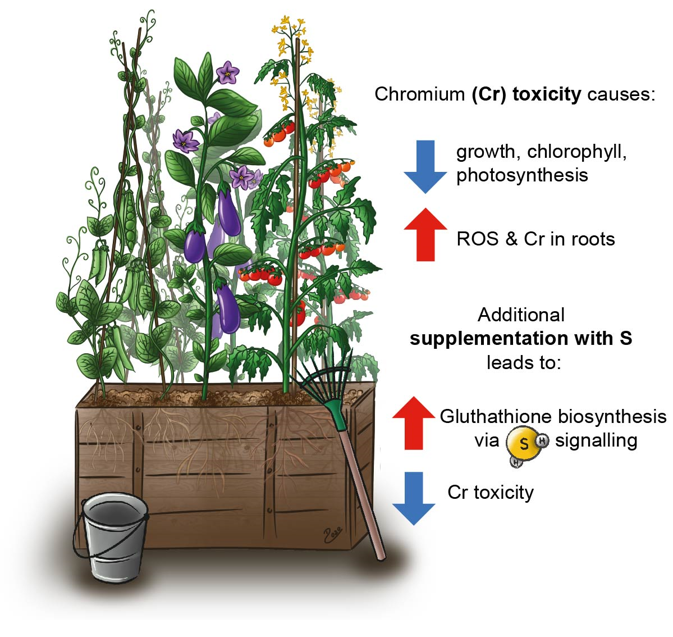 The content of reactive oxygen species (ROS) in a cell is governed by the careful interplay between (1) ROS produced as a by-product of a variety of biochemical pathways, and (2) the ROS-scavenging ability of antioxidants, which can rapidly detoxify these harmful compounds. One of the most potent antioxidants known is glutathione, a seemingly simple tripeptide made-up of a cysteine residue sandwiched between a glutamate and a glycine residue. In the cell, this molecule exists in two primary forms: a reduced state capable of neutralising harmful ROS, a process that results in glutathione converting to its secondary, oxidative state. So crucial is this molecule to the health of the cell that the ratio between glutathione’s reduced and oxidative states is commonly used as a diagnostic of cellular oxidative stress. This article by Kushwaha and Singh (2019), investigates the interrelated roles played by H2S signalling and glutathione in minimising stress caused by chromium toxicity in a range of important vegetable species. Read on for more information!