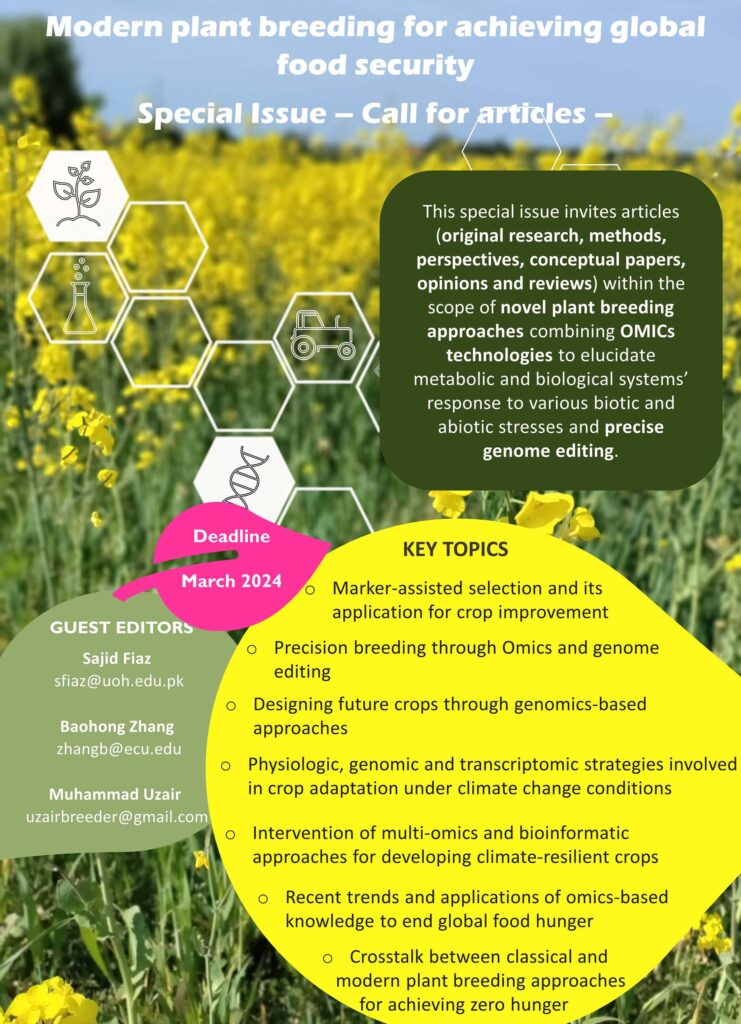 In this special issue, we welcome original research, comprehensive and minireviews, technical focus, short communications, and viewpoints highlighting the role of modern plant breeding approaches for developing novel traits in crop plants essential for ensuring food security in the following research areas but not limited to: