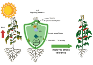 - Abiotic stress tolerance: H2S enhances plant tolerance against agricultural threats, including drought, salinity, and heavy metal toxicity by maintaining cellular homeostasis under duress.