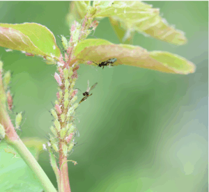 This review focuses on an indirect defense – a tritropic alliance between plant, aphid and parasitic wasp.